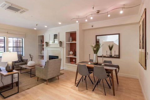 Beautifully updated townhome just 3 blocks to University Avenue and 4 blocks to Whole Foods. Secluded and set back from the tree-lined street. Spacious living room with hardwood floors, recessed media shelving flanking a fireplace, and contemporary light fixture. Chefs kitchen with granite countertops, center island, abundant cherry cabinetry, hardwood floors and stainless steel appliances. Carpeted master bedroom suite with wall of mirrored closets, three windows and beautifully updated bath. Private outdoor patio with gate to the community courtyard. Secure and gated underground parking for two cars plus lockable storage closet. Convenient location just over one-half mile to Caltrain, one mile to Stanford University, and less than two miles to Highway 101 for access to all of Silicon Valley. Outstanding walk score of 92. Excellent Palo Alto schools.