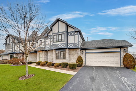 Remarkably distinctive European inspired Tudor design distinguishes this rarely available duplex 2-story with basement in highly acclaimed "Edelweiss In The Park" community of Palos Park. Its roomy meticulously maintained interior features welcoming 2 story foyer open to big relaxing living room. Large & bright eat-in kitchen flowing into leisurely family room with fireplace & classic french doors to oversized formal dining room. Sliding door to restful patio overlooking a pond set in beautifully kept grounds. Upstairs find lifestyle adjustable 3 or 2 bedrooms with loft. Oversized ensuite master bedroom. 3rd bedroom does have a door & a closet but is currently used as a loft/has opening to lower level - easily convertible into 3rd bedroom. Seldom found in this complex unfinished basement ideal for storage or possibility of future extra living space. Terrific location minutes from Forest Preserves & Lake Katherine Nature Center. Easy to see & to buy so schedule your private viewing before this unique find is gone.