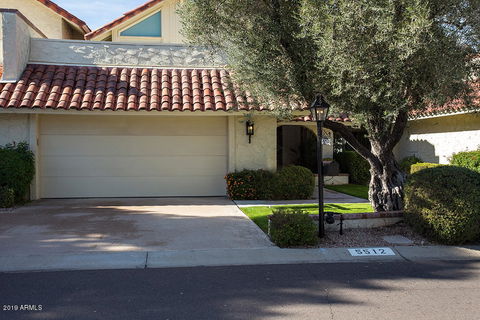 Wonderful 3/2.5, 2,100'+ townhome in Villa De Fuente – one of Scottsdale's finest in-town communities along the Scottsdale Road corridor. Thoroughly updated & upgraded with large master suite on the first level, great room boasting high vaulted ceilings & southwest fireplace, cooled wine closet, dining room with open beam ceiling, and gourmet kitchen with granite counters and stainless steel appliances. Upstairs features bedrooms two & three served by a Jack n' Jill bath, along with a large loft that would make for a perfect den or home office. An upstairs balcony overlooks the Flagstone private patio with mature vegetation, decorative fountain, and built in gas BBQ. The entry features a verdant, gated courtyard. The community pool, spa, clubhouse, and fitness facility are steps away.