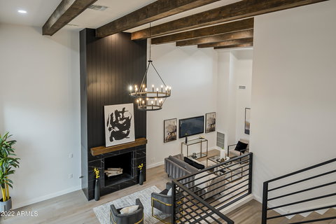STUNNING VIEW of Camelback Mountain / Praying Monk! Come fall in love with this gorgeous, fully remodeled townhome located in the highly sought-after Villa Serena neighborhood in Paradise Valley. This conveniently located 3 bedroom, 2.5 bath, 2 car garage, move-in ready home has the best mountain views in the neighborhood of Camelback/Praying Monk from your private patio roof deck, along with being just minutes away from Fashion Square. You can walk to Houstons, AJs, Trader Joes, the new Ritz and it's just down the street from Fashion Square and Old Town. This townhome was taken down to the studs and has all brand new plumbing, electrical, HVAC, and roof. No expense was spared on this entertainer's dream home and it shows! From the soaring ceilings with integrated LED lighting and (Cont.. fans throughout, ceiling high fireplace encased in custom tile, large open chefs' kitchen that boasts natural wood and white shaker cabinets with soft close hardware. high-end Monogram appliances and wine cooler, white porcelain farmhouse sink and high-end white quartz waterfall countertops with dual breakfast bar seating and ample storage underneath for everything an Entertainer/Chef needs. Everything has been modernized and is brand new in this remodeled home. From the custom fabricated front door and stair railings, hardwood flooring throughout and bedroom carpets to the completely remodeled bathrooms with updated dual vanities, elegant porcelain tile and custom glass shower doors. Open the new sliding doors from the kitchen into your courtyard and walk out to your own private desert oasis featuring brand new tile flooring, bougainvillea plants, washer/dryer room and a storage room that most units don't have. Other upgrades include all new windows, doors, drywall throughout, and interior/exterior paint. Don't miss-out on the chance to own the best townhome, in the best location in the neighborhood, in one of the best school areas in the state, as this one won't last long. **Future buyer can install a spiral staircase from courtyard to viewing deck. No approval needed per HOA**