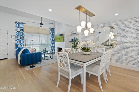 Welcome to this designer style townhome in Villa de Fuente. Upgraded from top to bottom with gorgeous, brand new finishes including quartz countertops, hardwood flooring, ss appliances/hardware and chic wallpaper to compliment the bright and airy feel of this modern home. Everything in this townhome is practically new including ac, cabinetry, sliding doors, etc. AND is 5 minutes away from Old Town Scottsdale, Scottsdale Quarter/Kierland, & everything else Scottsdale has to offer. Perfect home for Airbnbs, VRBOs or those who like to be in the middle of everything and don't want to lift a finger as this unit is turn key & all of the heavy lifting has been done for you.