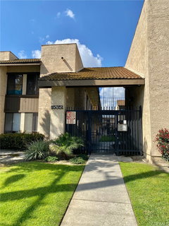 TURNKEY!! Remodeled 2 bedroom, 2 bathroom unit in the desirable gated Complex known as Paramount Plaza. Newly painted interior, in neutral and soothing tones, new wood like tile flooring in the dining area and hallway. Step into the spacious living and dining area with access to the outdoor patio, Kitchen includes walnut colored cabinetry with newer formica counters, stainless steel sink and recessed lighting. The ample bedrooms have beautiful laminate flooring with mirrored wardrobe closets and recessed lighting. One of the two bedrooms has its own bathroom with tub and white tiled shower walls with a decorative trim, newly installed vanity, sink, mirror and wall bar lighting, The generously sized secondary bedroom also features mirrored wardrobe closet doors, laminate flooring and recessed lighting. Hall bath includes tiled enclosure, new vanity and sink. This is one of the few units in the complex that has a rear access door to your very own carport w/storage and additional assigned parking space. Other notable extras include 24 hour surveillance, onside laundry facility, gated entry and new fencing around patio. Close to freeways, schools and shopping.