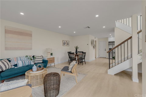 Spectacular end-unit townhome with sun-drenched interior and prominent skylights making the home feel incredibly bright and airy. On the main floor you'll find a spacious living room that opens up to a private patio and a tastefully upgraded kitchen fully furnished with stainless steel appliances. Upstairs is an oversized master suite featuring a separate vanity area and a luxurious en-suite bathroom, along with the additional bedrooms that have plenty of closet space and a fully remodeled bathroom. Home is well equipped with central ac and heat, laundry room, and direct access to the attached 2-car garage. Located in a quiet, well-maintained community and move-in ready.