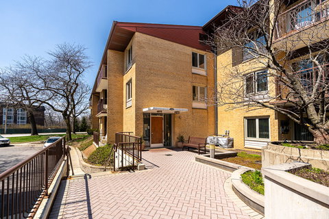 Welcome to your serene retreat! Move right in to this spacious, sunlit and thoughtfully designed first-floor condo in the Tattersall Square Complex - offering the perfect blend of comfort, style, and nature. Step out onto your private balcony and take in the peaceful views of the adjacent forest preserve while drinking your morning coffee - your own slice of tranquility. Plenty of space to entertain in the large open concept living and dining room. Enjoy cooking in the updated kitchen with stainless steel appliances and quartz countertops. Featuring 2 generously sized bedrooms - both bedrooms offer ample closet space, while the primary suite includes an updated en-suite bath with tasteful, modern finishes. The second bathroom has also been beautifully updated for guests or shared use. The in-unit laundry room brings added convenience and storage flexibility. With plenty of closet space throughout, beautiful natural light, and easy access to trails and transportation (close to 294), this condo checks all the boxes. Garage parking, guest parking and extra storage included. Magnificent courtyard with fountain and benches. Outdoor in-ground community pool is being completely updated. Don't miss out on this rare first-floor gem -schedule your showing today!