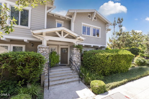 Classic Craftsman-style townhouse in the spectacular Pasadena community of Fair Oaks Summit. This lovely unit is a beautifully appointed end unit with windows on 3 sides with easy access to the street for a walk or jog.. An open floor plan with vinyl wood grain flooring through out gives you a feeling of space and with the flip of a switch you have fire from a gas fireplace in the living room. The ambiance is wonderful with gorgeous Mid-century style accent lighting, recessed lighting and recessed directional and dim-able artwork lighting, allowing you to illuminate your artwork perfectly. A spacious and functional dining area with direct access through french doors to an outdoor covered second patio is unique in that out of the 24 town homes in this community only 4 have this feature. It looks out to beautiful gardens with gazebo.The kitchen gives easy access to dining area for entertaining and serving dinner and boasts granite counter tops and stylish cabinetry. Stainless steel appliances, gas stove with microwave over it and recessed lighting make for a very modern space with porcelain tile floors and at the sink an insta-hot water dispenser. Down stairs there's a bath for easy use by guests and right next to large laundry area with full size washer and dryer and area for storage as well. Climb the stairs covered with lush carpeting upstairs to the bedrooms. Lots of windows in the Master Bedroom give you a cheery and light filled room accented with modern lighting. There's even a view looking out to the gardens below, tree tops and the mountains in the distance. Duo Sinks in the master bath each side with their own medicine cabinet. A large tub for a relaxing soak and separate glass enclosed shower Lots of light with windows on 2 sides in the second bedroom with modern specialty lighting. An ample bath off the large wide hallway with built-in shelves and cabinetry, in the bath separate areas for toilet and shower and sink out front. The third bedroom used also as an office has been a great option for working at home these past months, stylish shelves and modern lighting accent this space beautifully. This is urban living in a gated community, minutes away from the world renowned Rose Bowl and enjoy shopping and dinning at close by Old Pasadena. And Just to the North enjoy the many hiking tails in the foothills This home sits on a 2 car garage with direct access in to the living area.