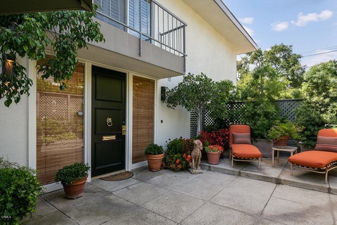Welcome to 840 S Orange Grove Blvd., a sophisticated end unit situated at the corner of S. Orange Grove Blvd. and Bellefontaine Avenue. Filled with natural light, this town home offers two bedroom suites upstairs plus a convertible office space with pocket doors. Enter from the large patio to a formal entry and a sweeping staircase. Downstairs offers a formal living room with built-ins and a fireplace, formal dining room and eat-in kitchen with laundry. Two large patios make for easy entertaining and a Southern California lifestyle.