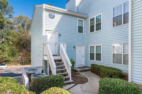 Welcome to this beautifully updated top-floor unit in a well-maintained, quiet community. With new cabinetry, new butcher block countertops, and new Pella windows, this condo exudes a fresh, modern feel. The entire unit has been freshly painted and features LVP flooring throughout. Once you come upstairs from the foyer, the unit is all on one level. The floor plan is perfect for roommates, with a split bedroom plan, and a 3rd bedroom/flex room that can be an office, workout room and more! The kitchen has been updated with a brand-new deep farmer's sink complete with a cutting board and drying rack, plus the brand-new live edge butcher block countertop (granite on the side with stove and refrigerator), and new cabinets with soft close drawers and doors. The dining area has vaulted ceilings and picture windows with nice views. The living room boasts a cozy fireplace with a gas starter, perfect for cool evenings, tv wall mount, wall desk, and lots of natural light. The master bedroom offers direct access to the balcony, where you can enjoy peaceful views of the trees behind the unit-offering year-round privacy and a stunning display of pink blooms in the spring and greenery throughout the year. The master bathroom has been tastefully updated with a new vanity and shower. The second bathroom also features a new vanity. Step outside, and you'll find a beautifully landscaped community with pool and tennis courts, all just a short walk away from the unit. The location couldn't be better-conveniently close to I-285, The Forum, top-rated restaurants, shopping, and schools. This move-in ready condo offers convenience, privacy, and modern comforts, all in a fantastic location. Don't miss your chance to make this updated gem your new home!