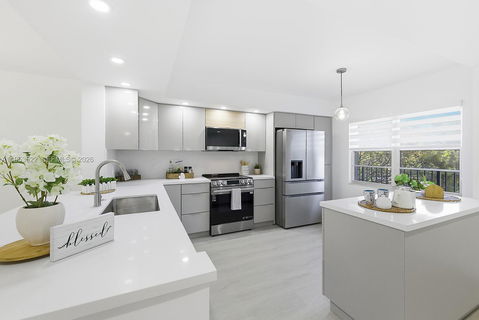 Experience luxury living in this stunning golf-view residence located in Century Village. This brand-new, modern unit features a new A/C system, a contemporary kitchen with sleek, custom-made cabinets, quartz countertops, and brand-new appliances. Enjoy the beauty of new vinyl flooring, freshly painted interiors, and elegant bathrooms. This unit also offers a garden and water view, adding to its serene and inviting atmosphere. Premier 55+ resort-style amenities include a state-of-the-art clubhouse, heated pools, a fitness center, tennis courts, a golf course, a theater, and endless social events and activities. Additional conveniences include 24-hour security, transportation services, dining, and entertainment. Assigned parking is included, along with ample guest parking.