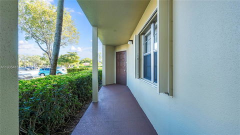 Welcome to resort-style living in Century Village Pembroke Pines. This first-floor corner unit, ideally located next to the back entrance, offers easy access and added privacy and is one of the larger models at 1,540 sq ft. The home features two walk-in closets, new flooring (2016), a renovated master bathroom (2022), new A/C (2022), new water heater (2024), new hurricane shutters, and new blinds throughout, along with a tiled balcony and a kitchen equipped with stainless steel appliances. The HOA provides exceptional value, covering water, exterior insurance, roof, cable TV, WiFi, and landscaping, while offering resort-level amenities including multiple pools and an Olympic-size pool, golf course, tennis courts, racquetball, water sports, transportation services, and two clubhouses with a theater and a full calendar of social events and activities, recreation areas, and fully equipped gyms.