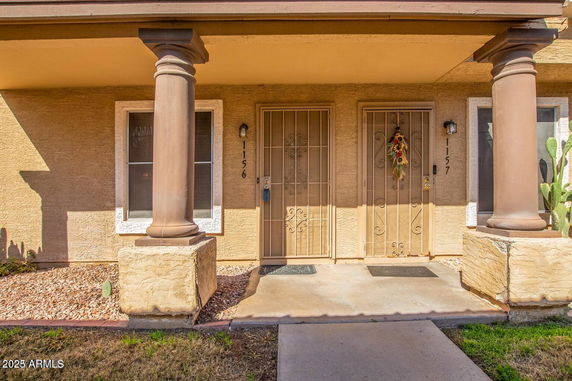 Front view of a two-unit residential building with decorative columns and detailed doors.View ListingMLS ID #6920301