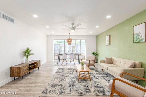 Discover urban living at its finest in this fully renovated 2-bedroom, 2-bathroom condo nestled in a gated community just minutes from downtown Phoenix. This modern gem includes an open floor plan as you enter to an oversized window giving it Warm Natural light daily. Remodeled with sleek finishes, a gourmet kitchen with stainless steel appliances, two spacious bedrooms & separate baths.Enjoy a sparkling pool and well maintained grounds in this gated complex. Perfectly situated in a vibrant location, you'll be steps away from trendy dining, shopping, and entertainment. Experience comfort, convenience, and luxury in this stunning Phoenix condo! **Heating, cooling & electric covered in HOA fee! As well as the roof and exterior maintenance. Designated covered parking space with a storage