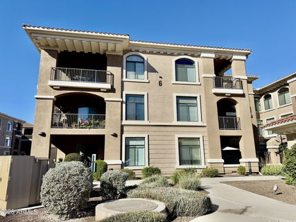 Welcome home to this beautifully updated 2 bedroom, 2 bath condo located on the third floor in the resort style Aderra community! Enjoy peace and privacy with no neighbors above and with elevator access to your floor. The open, split floorplan features soaring 10' ceilings, quartz countertops in the kitchen and bathrooms and it also features a cozy gas fireplace. The primary suite offers double sinks, a walk-in closet with private patio access. Bathrooms were remodeled in 2020 with new shower doors added in 2024. Relax by the heated pool and spa, grill at the Ramadas, or get a good workout in the fitness center. The complex backs to Stone Creek Golf Course and also features a walking path. Aderra offers true Arizona resort living!