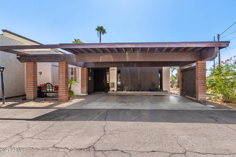 STUNNING! Completely remodeled town-home is a designers dream. You will love this modern style 2 bedrooms, 2 bathrooms, wood burning fireplace, wood beams in tall ceilings, tile in all rooms, bright kitchen with stainless steel appliances quartz countertops, flood lighting & french doors to patio exit. You will love the designer master bedroom leading to the remodeled master bathroom & patio exit as well. Ready to enjoy your cup of coffee. Walk-In Closet. The guest bathroom is private & spacious. Washer/Dryer included. Storage unit is at front of unit. Community Pool is refreshing and private. A place to call home & enjoy all amenities: amazing shopping, 51Hwy, great entertainment, incredible restaurants, notable schools & so much more. Location, location, location!