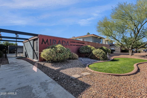 Mid-Century Modern Gem in Camelback Corridor. This single-story, 3-bd, 2-ba condo epitomizes mid-century style & effortless living in a prime location—minutes from SR-51, Sky Harbor, Restaurant Row, Roosevelt Row. Enjoy a sprawling, stair-free floorplan w wall-to-wall plank tile, chef's kitchen featuring quartz slab counters expansive butler's pantry and prep island. The spacious primary suite includes a walk-in closet and en-suite bath with a fully tiled step-in shower. Secondary bdrms bathed in natural light with floor-to-ceiling windows. Can lighting, ceiling fans, deep eaves/overhangs, and lock-and-leave ease. Move-in ready with all appliances. Step outside to your breeze block-enclosed private patio or relax by the sparkling pool in the boutique 1962 Mirada Luxury Condos.