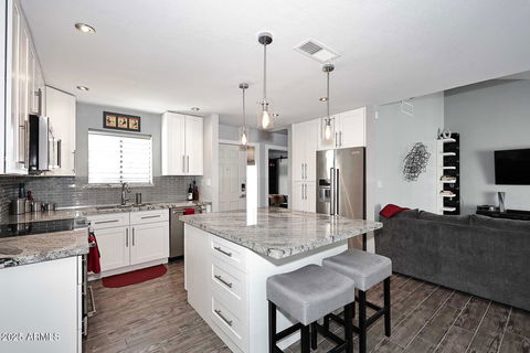 Seller has spared NO expense in transforming this amazing home with quality upgrades throughout the entire home. It's an entertainer's delight with a huge center island kitchen with breakfast bar that opens to an ample sized dining area and a comfortable great room with inviting custom fireplace. Kitchen boasts Kitchenaid appliances, custom 42'' cabinets with soft drawer close, pullouts, undercabinet lighting and outlets, counter depth refrigerator, gorgeo...