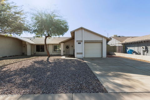 Welcome to this single-story townhome nestled in Suncrest Villas! Featuring a low-care front yard, a 1 car garage, and a welcoming front porch, it's sure to be the one for you! Entertain with ease in the sizeable living area, showcasing vaulted ceilings, wood-look flooring, and neutral palette throughout. The eat-in kitchen comes with ample cabinetry, quartz counters, tile backsplash, and a center island. The main bedroom is a peaceful retreat, complete with a walk-in closet and a private bathroom for added convenience. Don't forget about the cozy den, ideal for an office or reading nook. Lastly, the quaint backyard includes a convenient storage shed and a covered patio where you can unwind while enjoying your favorite drink! Don't miss it!