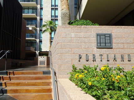 This unit is one of the corner units with floor to ceiling glass on the cooler northeast side of building. The Portland Place Condos location, adjacent Margaret Hance Park and Japanese Garden with Sky Harbor light rail connection down the block and around the corner, can't be beat for quality of setting and convenience. Numerous restaurants, coffee bars, dry cleaner, salons, and other venues a short walk away.
