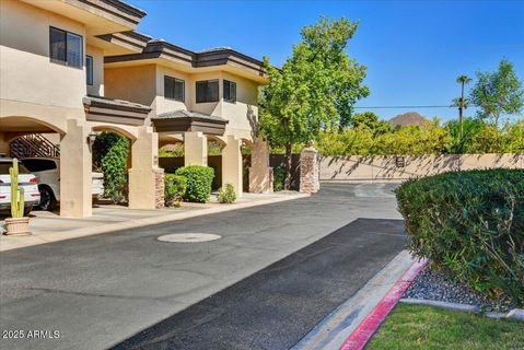 Fantastic Location in Biltmore area at 32nd & Camelback. Gated secure access with great views of Camelback Mountain and Piestewa Peak. This perfectly situated 2 bedroom, 2 bath with laundry room was partially remodeled in 2022. Gorgeous new master bath with all new tile, plumbing fixtures, glass shower enclosure, toilet, vanity and lighting. Master Bedroom and living area have sliding door access to north facing outdoor patio area with additional storage. Bedroom closets updated with barn doors. Upgraded with recessed downlights on dimmers, ceiling fans, new fireplace mantel. New carpeting and paint throughout. A/C system maintained by the HOA. Covered dedicated parking below unit. Vacant and on lockbox