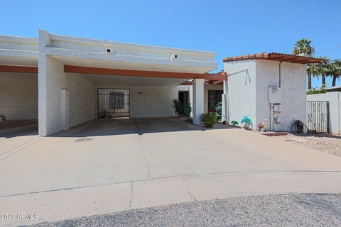 APPRAISED OVER LIST PRICE! This 3 bedroom 2 bath end-unit townhome is located in a quiet cul-de-sac in one of the most DESIRABLE AREAS of Phoenix. This home offers a LARGE PRIMARY SUITE with French doors, patio access, and an ensuite with dual sinks, large walk-in shower with bench seating and a walk-in closet. The living room features a wood-burning beehive fireplace and VAULTED CEILING with wood beams, creating a cozy yet airy atmosphere. The dining area is perfect for entertaining while the kitchen is separated by a passthrough with a breakfast room ideal for casual meals. The PRIVATE YARD is spacious, yet low maintenance with views of lofty, mature trees from neighboring lots. This small, SECLUDED community offers grassy common areas and a beautiful, resort-style POOL just steps away from your front door. This home is perfect for those who want to enjoy the convenience of being CENTRALLY LOCATED while enjoying peaceful seclusion. COME TOUR this property to envision all the ways you can make it Your Home!