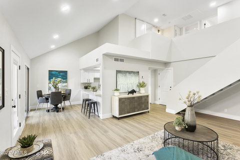 This luxury townhome is close to everything Arcadia-Lite & Biltmore has to offer. There's even an attached TWO-CAR-GARAGE! HOA INCLUDES ALL UTILITIES! Floorplan is open with a gorgeous private patio that extends the great-room. This property was just renovated and is appointed with everything you need to live in style. Natural light floods in with a large sliding door and windows. You get new premium flooring and paint throughout. High-end cabinets and counter-tops in the kitchen & baths. Each bathroom includes a modern premium plumbing fixtures. There's a washer/dryer combo upstairs, and tons of closet storage upstairs and downstairs. Enjoy your life living in this exquisite location. The airport, the best restaurants, and entertainment venues await you. Come see it; you'll be glad you d