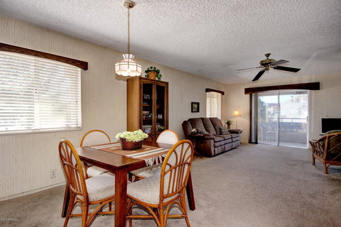 Lovely 2 bedroom condo located in Las Casitas. This 2nd floor home offers an open floor plan with designer paint and plush carpeting throughout. Wonderful views from two patios of the community pool and Stonecreek Golf Course! Kitchen boasts black & white appliances, custom cabinets and plenty of counter space including the breakfast bar. Spacious master bedroom has a walk in closet and master bath. Inside laundry area with stackable Washer and Dryer. Tons of open guest parking. Home equipped with two security doors and Carbon Dioxide detector. All appliances included! Close to PV Mall, great dining and easy freeway access!