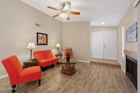 Gorgeous, updated 2 bed/2 bath townhome in gated community near Arcadia district. Conveniently located with shopping, restaurants and so much more close by. You'll love the light, spacious feel of this home... neutral tile in main areas gives a great flow to the home. White cabinets in kitchen (check out the pull-outs) and baths. Large pantry, all stainless steel appliances including wine fridge to convey in addition to washer and dryer, Updated baths, carpet in both bedrooms. Newer Patio doors to outside courtyard with brick pavers, covered patio and artificial grass. 2-car garage with epoxy flooring offers plenty of storage room. See home features in docs tab.