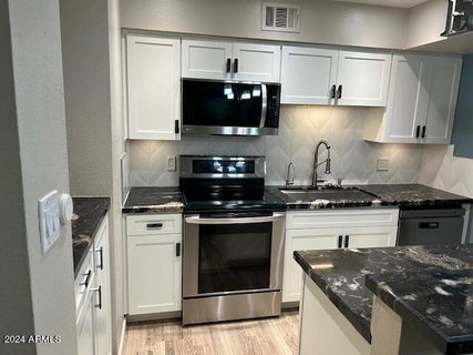 NICELY REMODELED POOL SIDE UNIT. KITCHEN GRANITE COUNTERS, WHITE SHAKER CABINETS WITH SOFT CLOSE, PULL OUT SHELVING, STAINLESS STEEL FARM SINK, STAINLESS APPLIANCES, TILE BACK SPLASH, R/O SYSTEM, LAMINATE FLOORING, DUAL PANE WINDOWS, HALL BATH HAS BEEN REMODELED WITH QUARTZ COUNTER, UPDATED VANITY AND SHOWER SURROUND, PRIMARY BATH HAS UPDATED SHOWER, WALK IN CLOSET IN PRIMARY BEDROOM, WALL SAFE, FRONT WROUGHT IRON DOOR. 1 RESERVED COVERED PARKING SPOT AND OPEN PARKING AS WELL IN COMPLEX. MADISON SCHOOLS!! CLOSE TO CANAL FOR BIKING AND WALKING. APPRAISED FOR $270,000 IN APRIL, 2023.