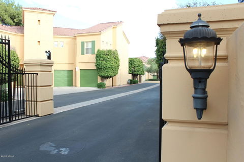 Wow! Here's your chance for a move-in ready, low-maintenance home in a gated community in Ahwatukee! Tuscany Courts is close to everything! Well maintained 2 bedroom, 2.5 bath townhome with a split 2-car garage. Open floorplan with a fireplace and views to the private patio. Check out the chandelier in the powder room! Upstairs, the master bedroom features a soaring vaulted ceiling and a separate office areas with balcony. The guest bedroom has its own pri...