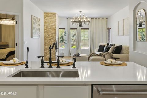 How do you say LUXURY in Italian? This beautifully designed, professionally renovated, 1st Floor condo in Toscana features the finishes & amenities you've been searching for, including: NEWER AC, Premium 3cm QUARTZ & MARBLE countertops, SOFT CLOSE kitchen cabinetry with pull-outs, marble look backsplash, SLIDE IN gas stove, wood-look flooring in all the right places, STACKED STONE fireplace, RENOVATED primary shower, UPGRADED primary closet, and so much more. Toscana offers GATE GUARD & security, 3 swimming pools, 3 clubhouses, 2 fitness centers, entertainment lounges & concierge services. Moments away from Desert Ridge, High Street, the 101 and more, you'll LOVE this lock & leave lifestyle with one of the most accessible & beautiful units. Que bella!