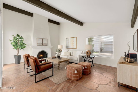 I M A G I N E... sitting next to the fireplace in your kitchen/breakfast nook. The morning is glorious. Your french doors are opened up to the red brick patio. Zero traffic noise here. Birds singing. fire crackling. Coffee being sipped. The living room has it's own fireplace with a large atrium that allows light to flood the room. The flagstone floor is stunning. This place feels like old-money. Ralph Lauren would be comfortable here. The kitchen and all three bathrooms are new. New tile, new plumbing fixtures, new countertops, and lots of new windows too. Things you can't see: new sewer liner, new HVAC, New elastomeric flat roof coating, roof warranty, new door hardware, new epoxy floor, new laundry room with countertop and cabinets. Come see this peaceful gated community and home.