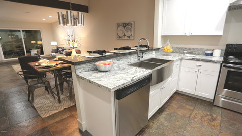 Incredibly well done quality remodel! 3 bed/2 bath townhome that is close to everything! Soaring ceilings, clerestory windows, and atrium keep this beauty light and bright. Ground floor single story and nobody above this unit! Chef's designer kitchen with BRAND NEW granite countertops, cabinets, sink with dish sprayer and disposal, and oven/cooktop with hood which complete the stainless steel appliance package, and is an absolute showpiece! Eat-in nook and breakfast bar are an added bonus! Split master suite enjoys plenty of room, brand new carpet, walk-in closet with wood flooring, bathroom with travertine flooring, and brand new granite countertop, twin designer sinks, cabinet, and fixtures. Master has access to backyard. Beautiful NATURAL SLATE FLOORS grace living and eating area as well as entry and hallways, to keep a clean look. Brand new carpeting in bedrooms, Freshly painted inside and out, new landscaping with new drip irrigation system, brand new dual pane sliding glass doors, front door, flat roof areas have been re-done, and there are many other upgrades. 2nd bedroom has separate access to the front, and 3rd bedroom has view of the atrium! The second bath has boasts new fixtures, cabinetry, granite countertop, and phenomenally gorgeous sink. This unit is 1533 square feet, and if that's not enough, there's even a large separate storage room for your extra goodies. Newer AC blows wonderfully cold air! Nothing is needed... This is Move in Ready! Windemere's lush mature landscaping with flowering trees and green grass is a beautiful community with only 15 units, great neighbors, and a fabulous crystal clear community pool. This is a must see! Check out the virtual tour. Don't miss out on this one- Call today for your own personal tour!