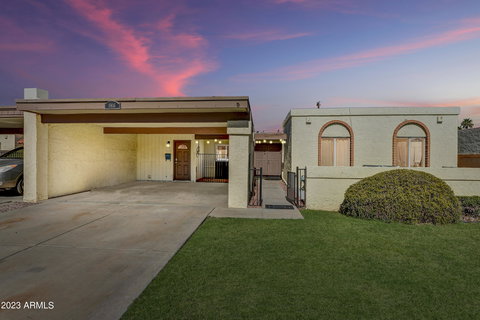 Charming townhome in a lovely community that offers a grassy park, large community pool and clubhouse. With 4 bedrooms and two baths, a living room and family room area, this home lives large! The kitchen is updated with granite countertops and black appliances. The main areas are tiled floors with light and bright windows across the entire back of the home. You have privacy and views to a large grassy backyard, with full fence. The hot tub is included! You will enjoy sitting out front in your courtyard and visiting with your neighbors on their evening stroll. This home has completely new plumbing, newer AC and so much more. Laundry room has space for storage. The Hoa maintains front landscaping. And, it is an easy commute to downtown or Grand Canyon University!