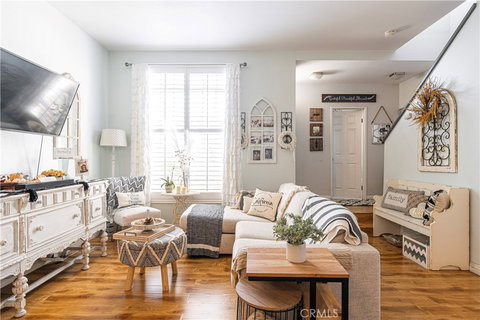 The home that you have been waiting for is finally on the market! This stunning two-story property boasts 3 bedrooms, 2 and half baths, and a generous 1,212 sqft of living space. As you step inside, you will be greeted with an abundance of natural light that fills the open and spacious layout. Beautifully upgraded kitchen with appliances included, along with washer and dryer conveniently located upstairs. Laminate wood flooring throughout. You'll enjoy spending time outdoors whether you are upstairs enjoying the 2 private balconies or in the downstairs front patio where you can soak up the sun and enjoy the fresh air. Perfect for that morning cup of coffee or tea. The master suite features skylights, private balcony, custom closet barn doors and a beautifully upgraded bathroom. The two-car attached garage conveniently provides ample space for your vehicles and additional storage. Low HOA and close to the 605, 60, and 5 freeways. Your new home is waiting! Don’t miss out on the opportunity to make this TURNKEY home yours!