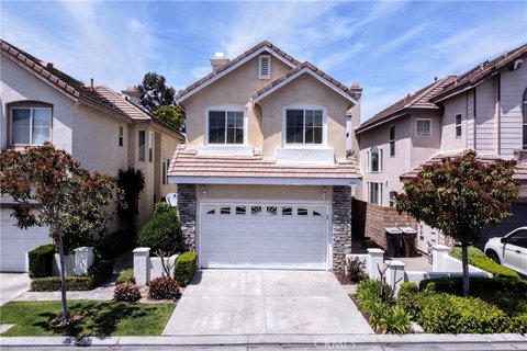 Golf Course View... Zero lot...Location location and location...This beautiful 4 bedroom 2.5 bath located in the gated community of Bella Vista on the green. Open floor plan, high ceilings, living room, formal dinning room, family and kitchen with granite and stainless appliances. All bedrooms are upstairs. spacious master bedroom and master bathroom, master has two closet: walk in and standard with mirrored doors. shower and separate tube with dual sink. The second upstairs bath room features granite countertops too. New vinyl floors, new interior paint. Hoa dues is only $110 includes swimming pool, Jacuzzi style spa, front yard landscape and electronic gated entry to Bella Vista. The home is located close to 91,55 and 22 freeway.
