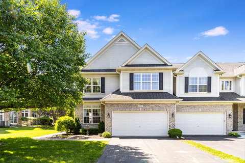Welcome to this stunning Heritage Oaks end-unit townhouse situated on a PREMIUM cul-de-sac lot and backing to a serene pond. This exquisite home is ready for the most discerning of buyers! Great Northside location and Plainfield North High School! This home boasts an open-concept and the overall size will amaze you! The floor plan offers 4 total bedrooms, a loft and a den! The main floor with beautiful hardwood floors, vaulted ceilings, and skylights that flood the space with natural light. The gourmet kitchen is a chef's dream, featuring 42-inch cherry cabinets (including custom extended cabinetry) offering extensive storage, and elegant granite countertops. Bottom oven is convection for added versatility. Convenience is key with a main floor office and laundry room, providing functional and practical living. The generous bedrooms provide ample space for relaxation. Granite countertops extend to the luxurious bathrooms, adding a touch of sophistication. The primary bedroom retreat is enormous - with a dedicated sitting area, full private bath and WIC! The fully finished basement is an entertainer's paradise, complete with a full bathroom, pool table, and sectional sofa, all included. Water softener and central vac AS-IS. Exterior painted in 2022. Roof, skylights, and shutters replaced in 2022. Furnace and humidifier 2023. New sump pump backup battery in 2024. Don't miss the opportunity to own this exceptional townhouse, combining comfort, luxury, and a picturesque setting.
