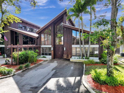 Light and bright, this 3 bed, 2.5 bath chalet style home is waiting for you! Enjoy an open concept floor plan with beautiful 29’ soaring vaulted ceilings, exposed wood beams and natural light in abundance. The owner’s suite with large walk-in closet is located on the 1st floor, along with a guest bedroom and full guest bathroom. The spiral staircase leads up to the 3rd bedroom and 1/2 bathroom. Outside, find a fenced (2024) private deck perfect for lounging or enjoy the community pool just steps away. Your comfort & energy efficiency are further enhanced with newer A/Cs from 2019 & 2023 and newer water heater (2019)! Ideally located in the heart of Plantation inside the Jacaranda Country Club in a private enclave of 20 homes, near top-rated schools, shopping, dining, parks, highways & more