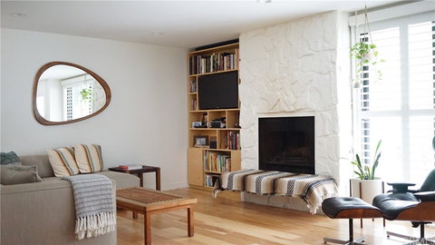 The first floor boasts a flexible floorplan with a wide-open living area. Beautiful new hickory hardwood floors and built-in shelving.
