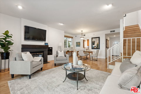 Experience coastal living at its finest in this beautifully updated, end-unit townhome in the coveted Beachport Village community of Playa del Rey. Boasting the largest floor plan available, this two-story, 1,318 sq. ft. residence offers windows on three sides, allowing for an abundance of natural light and enhanced privacy. Located in the highly sought-after Building 6, you'll enjoy easy access to community amenities, ample guest parking, and a quiet, walkable setting. Step inside to find a bright and airy living space, featuring laminate wood flooring throughout and upgraded double and triple-paned windows and sliders that enhance both energy efficiency and tranquility. The spacious living room welcomes you with a stylish black granite fireplace and a built-in media center, flowing effortlessly to one of two private balconies that offer extra storage and a perfect spot to relax or entertain. The generous open living and dining spaces, combined with the functional layout, make hosting gatherings a breeze while embracing the benefits of open-concept living. The updated kitchen is a chef's delight, featuring sleek quartz countertops and beaded oak cabinetry that adds warmth and character. A charming greenhouse window above the sink invites natural light and creates a perfect spot for your favorite plants. Whether you're preparing a meal for family or guests, the layout allows for easy interaction with the living and dining areas. Upstairs, the two spacious bedrooms each feature their own en suite bathrooms for added privacy. The primary suite stands out with vaulted ceilings, a private balcony, a walk-in closet, and additional linen storage. Just down the hall, the utility room with a side-by-side washer and dryer is conveniently located between the bedrooms for easy access.Natural light floods the stairwell from a skylight above, creating a bright passageway between the floors. Central air and heating ensure comfort year-round, while two tandem parking spots in the private garage and additional garage storage add to the home's convenience. Beachport Village's resort-like amenities include two pools, two spas, tennis courts, a clubhouse, and beautifully landscaped gardens with mature trees and soothing waterfalls, creating a peaceful retreat just a mile from the beach. Don't miss this rare opportunity to own a move-in-ready, turnkey townhome in Playa del Rey's most desirable location, with the perfect blend of beachside charm, luxury updates, and community amenities.