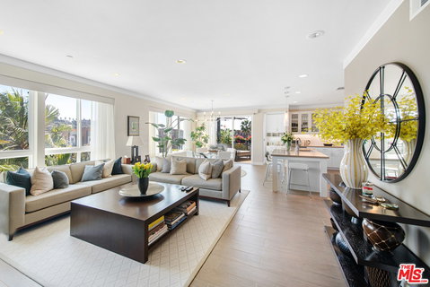 The absolute BEST unit in the Camden development is up for grabs & looking for a new owner. This previous model home is a true show stopper. Camden offers single level living w/ only 6 units in the building & its own private 2 car garage. Light & bright, top floor unit w/ panoramic views of the bluffs and the perfect sunsets out to the west. 3 bedrooms + office, 2.5 baths that feature tons of upgrades all laid out on over 1,800 sq ft. Open floor plan w/ south & western exposure provides for constant natural light throughout the day. Gorgeous ceramic tile floors throughout the living areas., Hunter Douglas blinds & custom drapery. Gourmet kitchen features Viking appliances, Quartz counter tops & walk--in pantry. Spacious balcony over looking Playa Vista. Master bedroom features a custom walk-in closet, a huge spa-like bathroom & a beautiful home office right off the master suite perfect for all your Zoom calls. No Mello-Roos for this property. Included are all of Playa Vista's amenities: The Resort fitness center, pool & clubhouse (just steps away), the Runway retail complex, Whole Foods, Centerpointe Club pool & fitness & so much more. This home is a must-see.