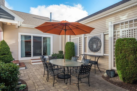 Spectacular "Fresco 5" in sought after Chadwick's Corner in The Pinehills. An enchanting courtyard with a covered porch and a fireplace leads you to the front door. This open floor plan living space includes a living room with a gas fireplace & custom built-ins on either side. An upgraded kitchen with custom cabinets, quartz countertops and a pantry. The dining area overlooks a private back deck for additional outdoor space. There is a private primary suite on the first-floor w/the ideal design of custom double vanities & dressing areas highlighted by the custom tiled shower, includes a sizeable walk-in closet. There is a 2nd bedroom on the first level and a full bath. A spacious mudroom and laundry room finish off the first floor of living. Guests will be comfortable in the 2nd floor suite complete w/full bath oversized bedroom and a loft. Stonebridge Club all part of the HOA.
