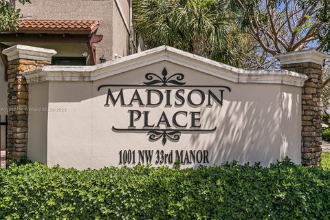 Beautiful Mediterranean style townhouses in gated community features very low HOA! Beautiful clean & spacious townhouse located in Madison Place with 9'6" ceiling. Impact windows, doors & garage. Lots of natural light in the kitchen, stainless steel appliances. Upgraded faux wood porcelain tiles & white shaker cabinets. Primary bedroom has a large walk-in closet. W/D is conveniently located on the second floor. Small outdoor patio right off the dining area. Paved 2 car driveway, 1 car garage. It has a pool, gazebo & kiddies tot lot. Conveniently located near I-95, Turnpike, Tri-Rail, & 5 mins from the beach, making Madison Place the best home value in the Pompano Beach area.