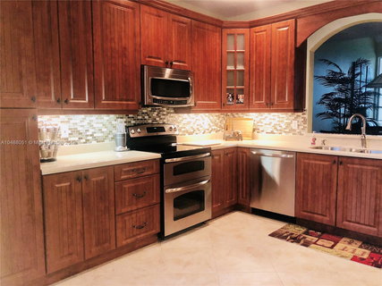 Beautiful Town House totally remodeled, all tile floor. Brand new kitchen with granite counter top and all stainless steel appliances. The master bedroom is located on the ground floor and offer all built in closet and double vanity in the master bath.There are 2 bedroom and a den with murphy bed on the second floor. The townhouse has 3 1/2 Bathroom. There 2 car garage. Pool area is over 600sf all screen.Beautiful view on the golf course. Out door pool totally screen nice BBQ area on site. This is a gated community. Community fees is $350 per month including exterior building maintenance , roof maintenance all the landscaping. All the furniture negotiable.