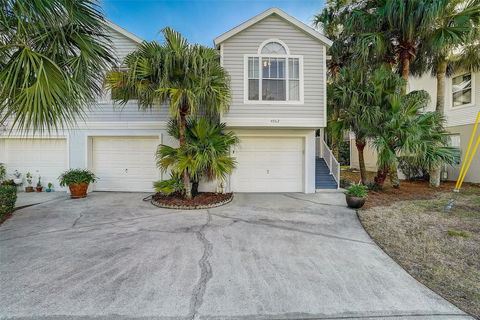 Explore the welcoming ambiance of Marina Palms, an exclusive golf-cart-friendly community. Presenting a captivating 3-bedroom, 2-bathroom townhome. This residence is move-in ready and comes completely furnished. Recently renovated, it showcases a modernized kitchen, bathrooms, and flooring. The extensive 5-car tandem garage, spanning over 1200 square feet, accommodates up to 6 cars or offers generous space for boats, kayaks, or jet skis.