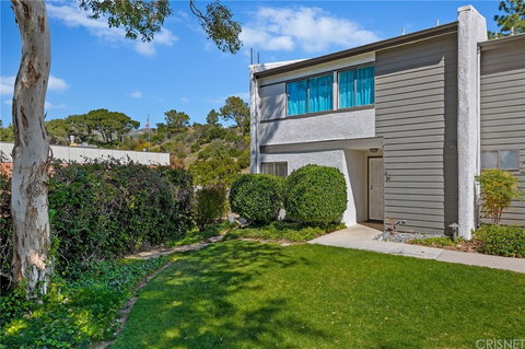 Wonderfully remodeled Tampa Terrace corner unit with double side yards. This quiet location benefits from the greenbelt being in front with large grass area. A short distance away is excellent dining and shopping in the newly built Porter Ranch Shopping Center in addition to the Porter Valley Country Club. Award winning Granada Hills Charter School District. The kitchen has been beautifully upgraded with stained concrete counters new cabinetry, drop down lighting, breakfast bar and glass tile backsplash. Spacious Master Suite with mirrored wardrobe doors, ceiling fan and private full bathroom. Secondary bedrooms are of good size. Both the guest and hall bathroom have been recently remodeled. Raised 6 panel interior doors, smooth ceilings with recessed lighting, laminate wood floors, wood shutter window treatments, designer colors and baseboards, in-door laundry room with ample linen closets and storage. Two sided patio. Parking space 2 and 39 closest to the unit.