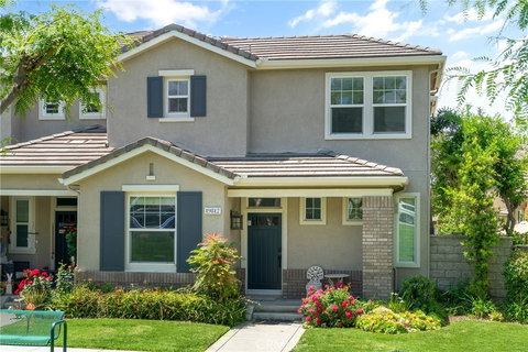 Welcome to luxury living in the heart of Porter Ranch! Nestled within the prestigious guard-gated community of The Promenade at Porter Ranch, this stunning townhome offers a perfect blend of elegance and convenience. Boasting three bedrooms and three bathrooms, this meticulously designed home features a coveted downstairs bedroom and bath, making it ideal for guests or multigenerational living arrangements. Step into the gourmet kitchen, where sleek granite countertops, stainless steel appliances create an inviting space for culinary adventures. The adjacent breakfast nook and open-concept dining room provide seamless transitions for hosting memorable gatherings with friends and family. Relax in the spacious living room, complete with recessed lighting, a cozy fireplace, and built-in shelving for displaying your favorite treasures. A sliding door leads to the private patio area, offering an idyllic setting for outdoor entertaining or enjoying a morning coffee in the sunshine. Upstairs, discover a laundry room and a built-in office/study area nestled between two ensuite bedrooms. The master suite is a sanctuary of comfort, flooded with natural light from windows that frame breathtaking views. Pamper yourself in the luxurious primary bathroom, featuring dual sinks, a walk-in shower, a separate soaking tub, and a generously sized walk-in closet. Additional highlights of this exquisite home include a 2-car garage with extra storage cabinets and epoxy floors for easy maintenance. The Promenade residents enjoy access to two parks and a resort-like pool and spa area, perfect for leisurely afternoons spent soaking up the California sunshine. Conveniently located just moments away is 'The Vineyards at Porter Ranch' offering a wealth of shopping, dining, and entertainment options, including Whole Foods, an AMC multiplex theater, and a variety of popular restaurants and shops. Experience the epitome of modern luxury living in Porter Ranch.