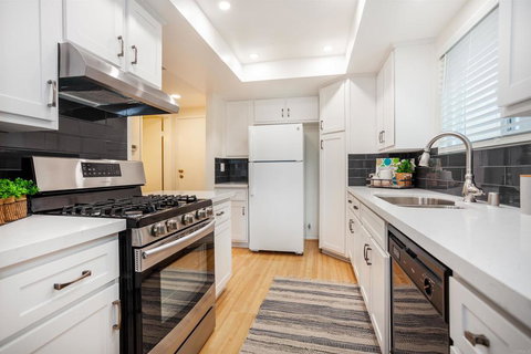 Upgraded Poway Charmer! This move-in ready condo lies in the heart of Poway! A corner unit with 1179 square feet, this 2-story, 2.5 bath, is truly a bright & airy home. With TWO Primary Suites, each with its own full bath, and an open loft office area with large opening skylight...perfect for breezes when working from home. High ceilings and tons of natural light, upgrades include NEW kitchen countertops, NEW cabinets, NEW carpeting and FRESH paint throughout. This clean & charming home also includes a cozy brick fireplace, refrigerator, central air conditioning and full-sized washer & dryer! Convenient and secure ATTACHED, 2-car garage with tons of storage. Located in the award-winning Poway Unified School District, the quaint Amesbury Court community with only 30 units, has a sparkling pool & spa and BBQ area. Very convenient location is only 4.5 miles to I-15 and a half hour straight shot to Del Mar beaches.