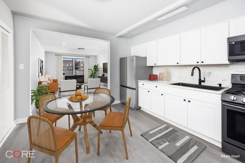 Conveniently located on a serene, tree-lined block, Monticello Gardens is a 167-unit, six-story elevator building built in 1951. Amenities include waitlist parking, laundry facilities, bicycle storage, and a live-in superintendent. There is no flip tax, and the building permits pets and sublets with board approval, per house rules. Just moments from local shops, dining, and transportation, it offers both comfort and convenience.
