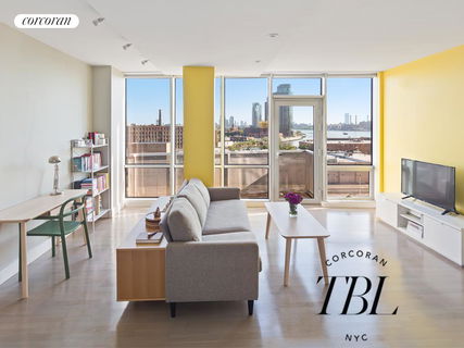 This beautiful home boasts a luxurious open layout chef?s kitchen accented with Corian countertops, custom white pine cabinetry & high-end appliances including: Italian designed SMEG cooktop with built-in wall oven, Liebherr refrigerator and dishwasher. Relax & Enjoy sweeping southern NYC views right from your living room/dining area with floor to ceiling windows. Master bedroom easily accommodates a king size bed w/ room to spare along with ample closets for your convenience.