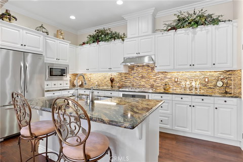 Discover unparalleled elegance in this meticulously maintained single-story gem nestled in Rancho Mission Viejo. You can feel safe in this 55+ gated community of the Gavilan Sendero which is the only gated community in RMV. This single-level detached home is turnkey with low landscape maintenance. Step inside to find a harmonious blend of sophistication and comfort, where hardwood flooring graces the living spaces and elegant marble and Italian tiles adorn the bathrooms. The primary suite exudes refinement with upgraded lighting, a walk-in closet, and charming wooden shutters, while the en-suite bathroom dazzles with its marble countertops, flooring, and exquisite framed mirror. Entertain with ease in the bright and airy great room, featuring an ornate built-in wall unit that seamlessly flows into the gourmet kitchen. Revel in the culinary delights of level 5 granite countertops, tasteful tile backsplash, and top-of-the-line stainless steel appliances, all framed by a custom brick archway. Throughout the home, lavish details abound, from the large crown and baseboard molding to the custom two-tone painted walls, creating an ambiance of unparalleled luxury. The pristine garage offers built-in cabinets, a convenient workbench, a tankless water heater, and epoxy flooring, ensuring both functionality and style. Enjoy peace of mind in this gated community with a built-in security system, while the cozy backyard oasis beckons relaxation with its elegant landscaping. Experience the epitome of upscale living in this remarkable residence, where every detail has been thoughtfully curated for the most discerning buyer. Enjoy a resort lifestyle at multiple clubhouses like the Hacienda, The Getaway, The Outlook, The BBQ Barn, with extensive amenities including a fitness center, salt-water pool, spa & cabanas, bocce ball, yoga studio, fire pits and tv screens. Plus, when you have the grandkids in town, you’ll have access to all the Award Winning RMV community amenities for those of all ages. Top it all off, 112 Lindura is only five miles from South Orange County’s sought-after shores!