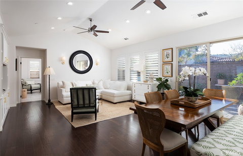 Welcome to your dream retirement oasis! Nestled in the gated community of Gavilan in Rancho Mission Viejo, this exquisite 3-bedroom, 2-bathroom attached bungalow offers the epitome of luxury living for those aged 55 and over. Step inside to an updated kitchen featuring a charming island adorned with shiplap detailing, granite countertop and a convenient breakfast bar for casual dining or entertaining guests. Marble backsplash, sleek stainless steel appliances and natural quartz countertops finish it off perfectly. The light and bright interior adds to the warmth of this home. Gather in the inviting family room, complete with custom built-in, pitched ceiling and beautiful ceiling fans. Primary suite is spacious with high ceiling has newly remodeled bathroom with large step in shower and high end finishes. Newly updated guest bath, recessed lighting and plantation shutters throughout and hardwood floors are a few more notable features of this stunning home. Positioned in a prime location with no neighbors behind step outside to the enclosed patio, where you can bask in the serene surroundings. Enjoy access to the community clubhouse, state-of-the-art workout facility, heated pool and soothing spa. With Bocce ball courts, walking trails and tons of planned community events, there's always something exciting happening just steps from your door. Experience the pinnacle of 55+ living in Rancho Mission Viejo's coveted Gavilan community.